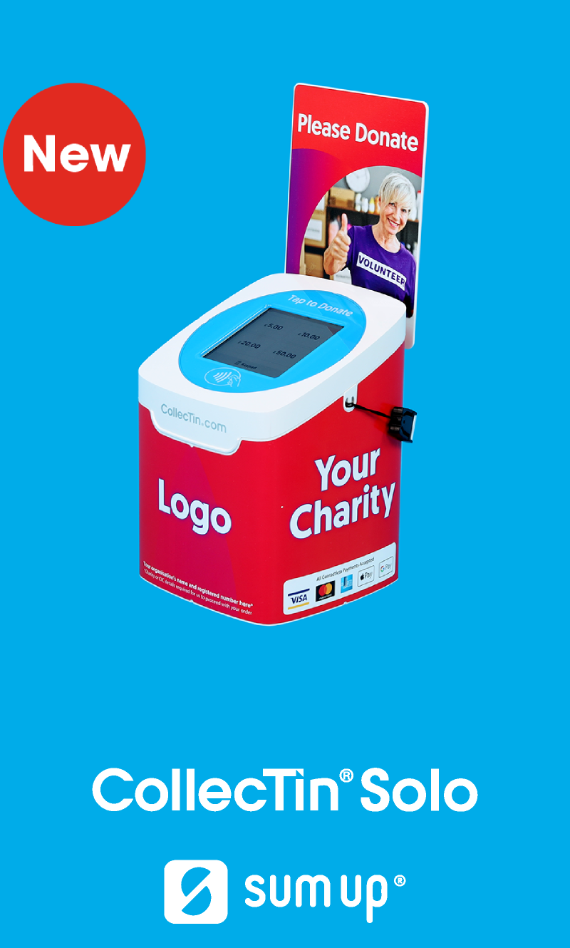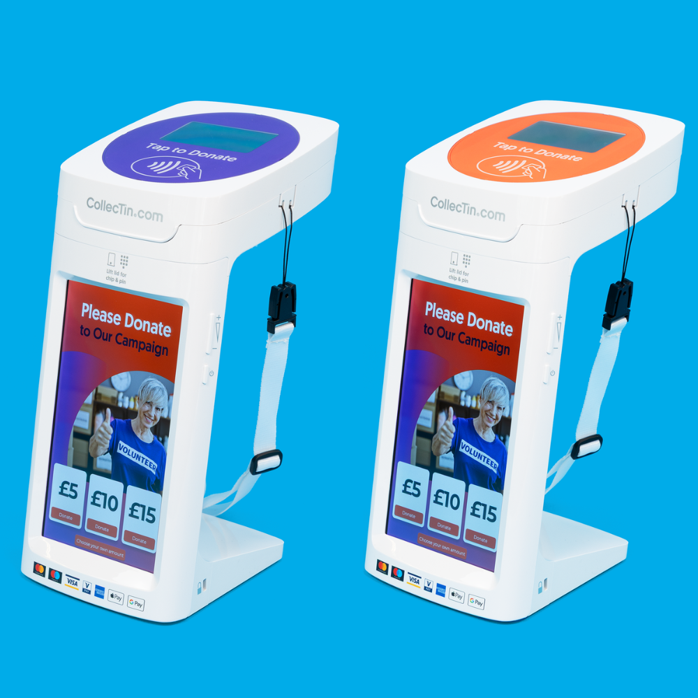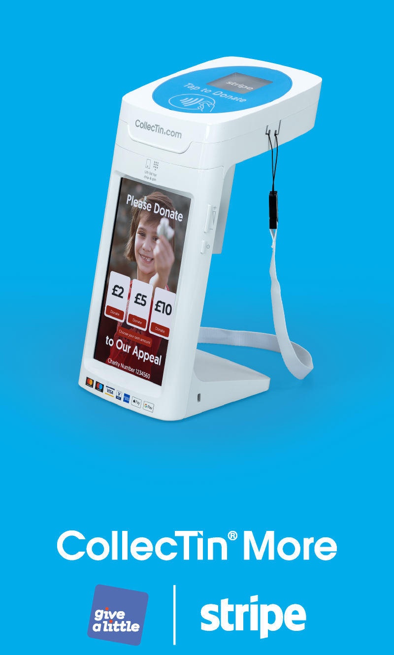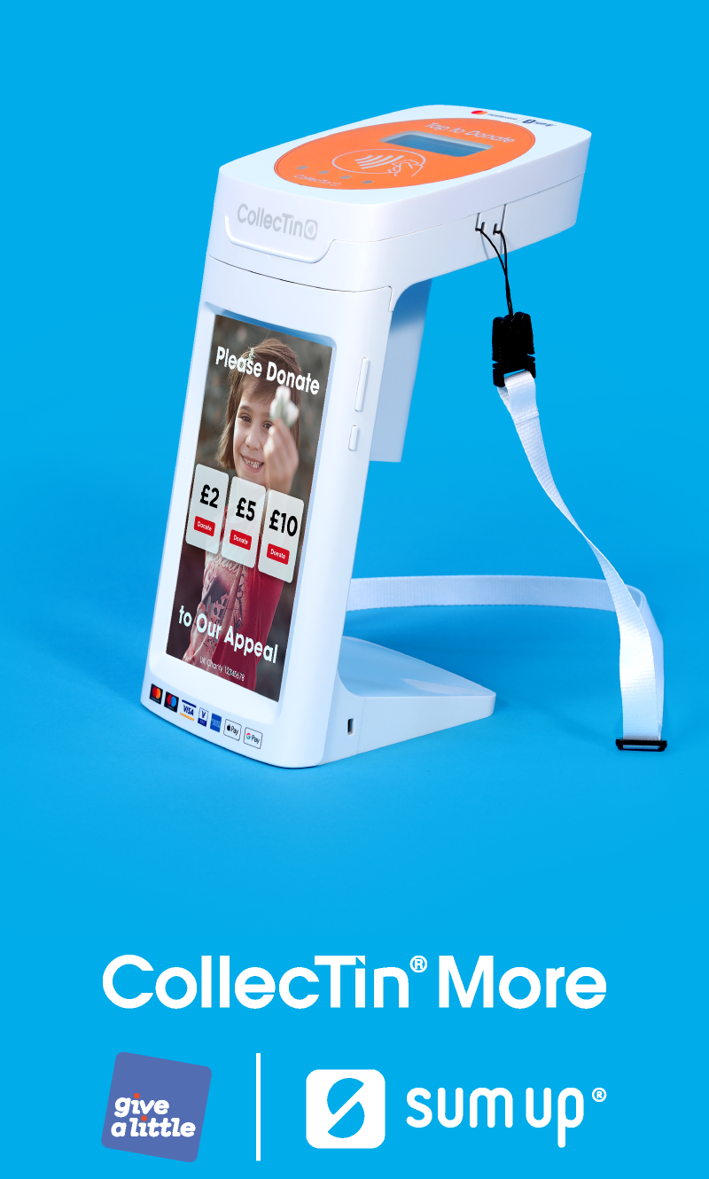 Our CollecTin More contactless donation units come with built-in Give A Little fundraising software and offer a choice of SumUp or Stripe payment readers.